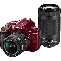 ♦ 1) Nikon D3400 Digital SLR Camera & 18-55mm VR & 70-300mm DX AF-P Lenses (Red) – Certified Refurbished