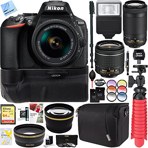 Nikon D5600 24.2 MP DX-Format DSLR Camera with AF-P 18-55mm VR & 70-300mm Lens Kit + 32GB Battery Grip Accessory Bundle