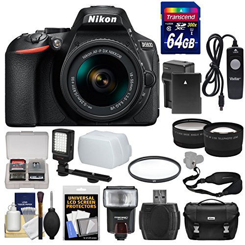 [1] Nikon D5600 Wi-Fi Digital SLR Camera & 18-55mm VR DX AF-P Lens + [2] Nikon Digital SLR Camera Case + [3] Transcend 64GB SDXC 300x Card + [4] Spare EN-EL14a Battery +