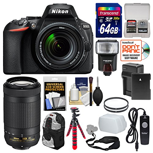 [1] Nikon D5600 Wi-Fi Digital SLR Camera & 18-140mm VR DX AF-S Lens + [2] Nikon 70-300mm VR DX AF-P Lens + [3] Transcend 64GB SDXC 300x Card + [4] Spare EN-EL14a Battery +