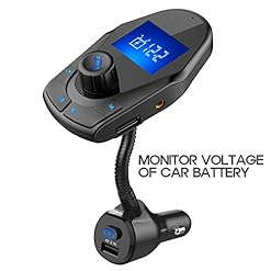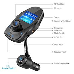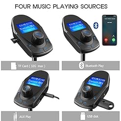 Nulaxy Bluetooth Car FM Transmitter Audio Adapter Receiver Wireless Handsfree Voltmeter Car Kit TF Card AUX USB 1.44 Display On/Off Button Folder Play Mode – KM24 Black