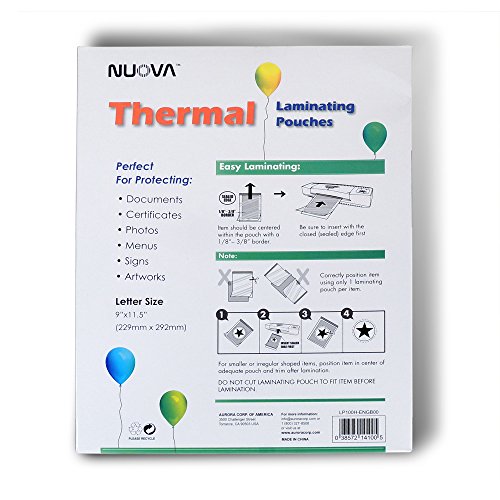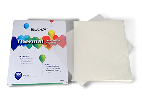 Nuova thermal laminating pouches are compatible letter size documents as much as 8.5 inches x 11 inches. Very best for shielding vital documents, photos and children’s artistic endeavors. Premium materials ensure that clear, durable results and easy