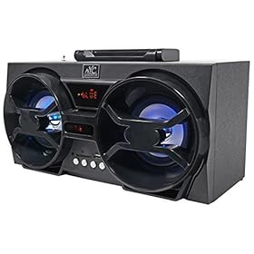 NYC Acoustics Dual 4″ 30 Watt Bluetooth Boom box Speaker w/LED Lights, USB, SD. 30 watts Peak power. 10 watts RMS power. Battery charges with included USB cable.