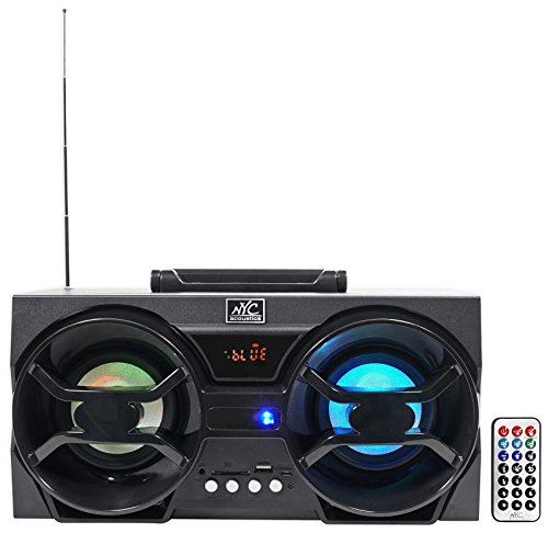 NYC Acoustics NPB3 Dual 4″ Portable Bluetooth Boombox Speaker+USB/SD/LED+Remote
