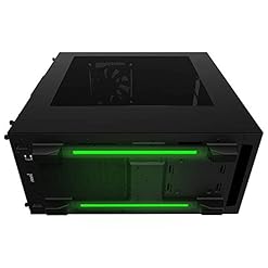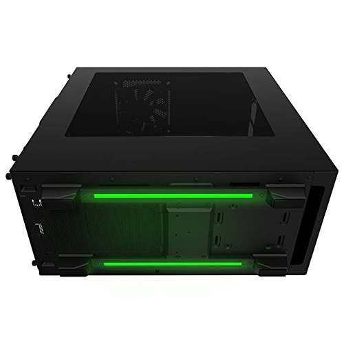 Razer Exclusive Features: Front panel and cable management bar come with a backlit triple-headed snake logo, tinted window, illuminated LED power button, under glow, and green USB ports.