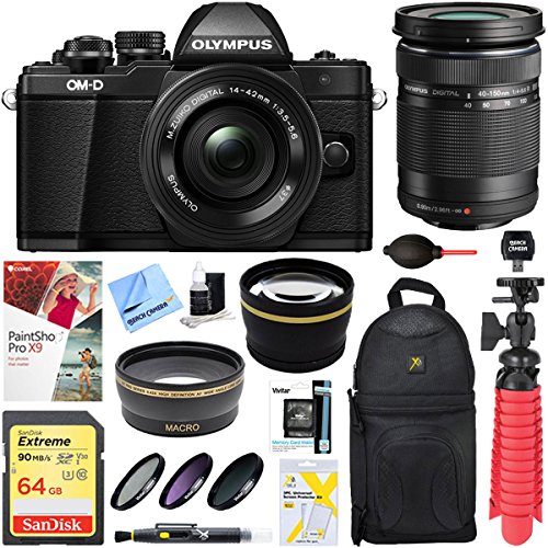 BUNDLE INCLUDES: Olympus M. Zuiko 40-150mm f4.0-5.6 R Zoom Lens – 64GB SDXC Memory Card – Deluxe Digital Camera Shoulder Bag – 12″ Rubberized Spider Tripod – 58mm UV, Polarizer & FLD Deluxe Filter Kit – 37mm UV, Polarizer & FLD Deluxe Filter Kit – Corel PaintShop Pro X9 Digital Download – Dust Removal Blower System – Lens Cleaning Pen – 0.43x Wide Angle Lens – 2.2x Telephoto Lens – Memory Card Wallet – Memory Card Reader – Mini Tripod – 3pc. Cleaning Kit – Screen Protectors – Microfiber Cloth