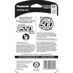 Includes 4 AA NEW eneloop pro 2550mAh type, 2450mAh min, Ni-MH High Capacity rechargeable battery