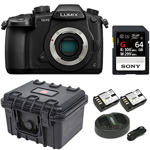 Panasonic GH5 Lumix 4K Mirrorless, 20.3 MP, Wi-Fi + Bluetooth,3.2″ LCD w/Sony 64GB SF-G Series UHS-II & Hard Case Bundle