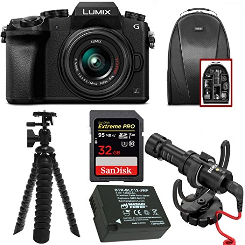 BUNDLE INCLUDES – Panasonic LUMIX G7 Mirrorless Camera w/ 14-42mm Lens / Rode Microphones VideoMicro On-Camera Mic w/ Rycote Lyre Shock Mount / Photo & Video Backpack / SanDisk Extreme PRO 32GB SD / Wasabi DMW-BLC12 Battery / Focus Spider Tripod