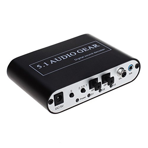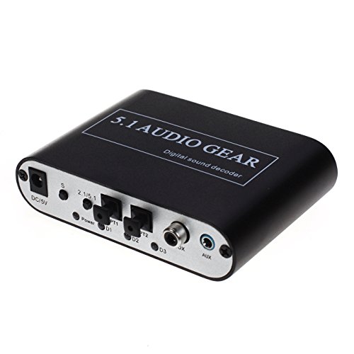 Audio inputs: 2 x Optical (Toslink), 1 x Coaxial, 1 x Stereo 3.5mm, Output:1 X CEN/ SW, 1 X FL/FR,1 X SL/SR,1 X USB( only 5.0V power supply as a substitute of audio out)