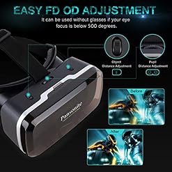 ★ Easy FD & OD Adjustment -The VR headset can adjust pupil distance in 60-70mm , each eye can be focused individually for different shortsightedness. Optical Grade PMMA Ergonomic Lenses are more closer to the human eye, no dizzy and eyestrain for your longer viewing or game playing . ( Under 500 degree: no need to wear glasses).