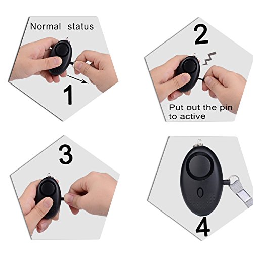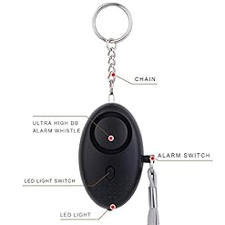 140DB emergency personal alarm could last 40 minutes continuous piercing alarm. 3 pcs* LR44 batteries included.