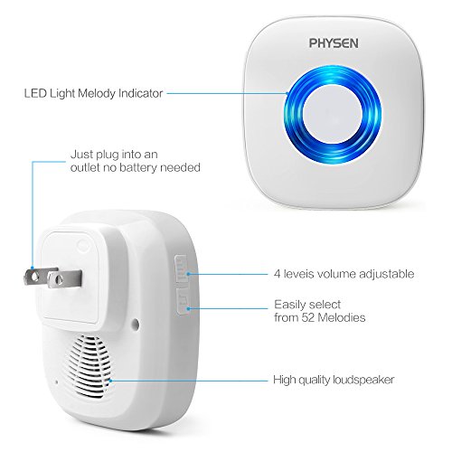 Receiver:4 levels of adjustable volume from 25-100 dB [much louder].Offer 52 elegant or custom music,from the traditional”Ding Dong” to various well know chimes [more choices].Build in blue led light for the hearing impaired.