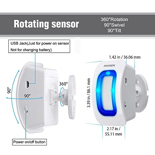 Working Principle- Our sensor uses PIR to detect any movement within the detection zone(8.2ft range x 110°). Perfect for long or hidden driveways to allow you just a little extra warning before guests arrive.Dimension: Receiver: 80 x 80 x 30mm or 3.14 x 3.14 x 1.15in; Sensor: 86 x 55 x 36mm or 3.39 x 2.17 x 1.42in