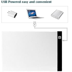 ULTRA THIN 3.5mm & LESS THAN 11oz – The 9″x13″ A4 size easily fits into your back pack or computer case making this the lightest and thinnest portable light table to be had. Made of super durable acrylic and a heavy duty USB cord that easily resists typical bumps and bangs that can occur, unlike other models where the cords fail after a handful of uses.