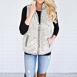 POCCIOL Women’s Casual Sherpa Fleece Lightweight Fall Warm Zipper Vest With Pockets
