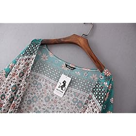 Pocciol Women’s Sheer Floral Print Sheer Chiffon Loose Kimono Cardigan Capes