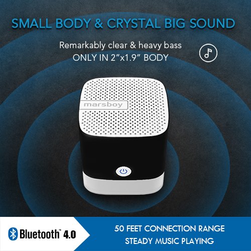 The MARSBOY mini Bluetooth speaker offers crystal clear and heavy bass sound with an elegant appearance. With the compact size (1.9″ x 2″), It may be easily fitted into a pocket or handbag, you’ll enjoy the coolest music device anywhere! The 3D Dynamic sound effect technique allows this small Bluetooth speaker deliver the music far and wide the house with such a tiny body.