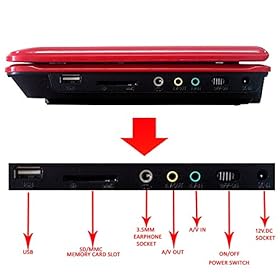 SONADY Portable DVD Players Red with 9.8”screen Supports SD Card and USB, AV inout Game, FM, Copy Function