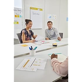 Self-stick sheets of premium, bright white paper resists marker bleed-through