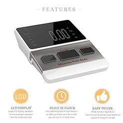 📬 A RELIABLE & SMART POSTAGE SCALE DESIGNED WITH EXTRA CONVENIENCE – Despite its sleek design, it has an external digital screen platform, connected via wire so You’ll be able to move easily read the weight results even At the same time as weighing large boxes on the floor, made with Newest technology for easy calibration, As soon as you turn it on, once you put on any shipping goods, the reading numbers is automatically displayed on the LCD Display.