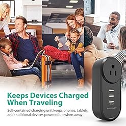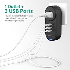 1 Outlet + 3 USB Ports: Powers the essentials so you can have all devices together while saving on space