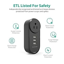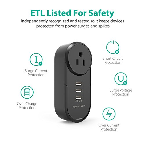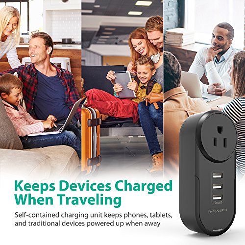 Power Strip RAVPower Rotate Plug 4-in-1 Mini Surge Protector (1 AC Outlet + 3 USB Ports) Charging Station with iSmart 2.0 Tech