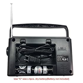 PR-137 AM/FM 2 Band Portable Radio AC Operated Built-in undetachable Power Cord or Operated by Dry Battery (C Size x 4pcs, Battery not Included), Black