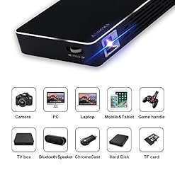 【ALL FUNCTIONS YOU NEED】① A mini projector which running Android OS,it can be use like a smartphone to download Youtube/Hulu/Netflix etc., all app you need can be downloaded via built-in FreeClick & Google Play Application Store. ② Built-IN 4200 mAh rechargeable battery inside the mobile projector provide 2-3 Hours non-stop work in a single charge. ③ Supporting play 1080p video resource bring you n excellent home cinema experience in dark. ④ Bluetooth 4.0 for connect to external speaker.