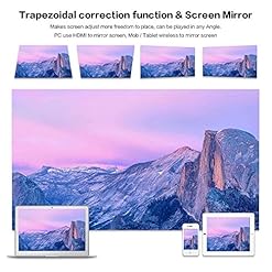 【PROJECTION EVERYWHERE】① A pico projector only 0.58lb, size as small as iPhone8P with compact and portable design is perfectly for work life and entertainment. ② Portable projector for iPhone can use HappyCast to wireless mirror you iPhone/iPad (if you are ios 11, please update HappyCast to last version),Using WIFI-Display to mirror your Android Device.③ This Video Projector can connect to any HDMI-enable device(Laptop/PS4/ChromeCast etc.), media players, USB flash drives(cable no included)