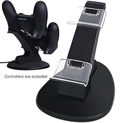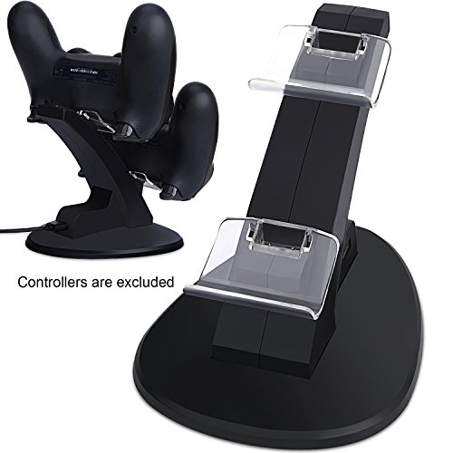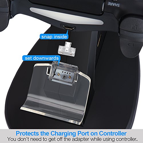 1.Unlike most if not the entire PS4 controller chargers on the market, these come with a charging dongle. Instead of plugging the controller into the charger, you put the dongle in the charging port and just place the remote on the charger dock with no risk of breaking the controller charging plug.