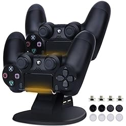 【With Gifts】But even so the playstation 4 controller charging station and 4 micro usb dongles, you’ll receive a USB charging cable, 4 white and 4 black thumb grips for controller joysticks!