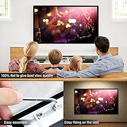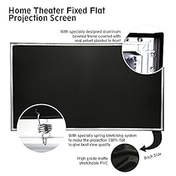 This 100’’ -inch Home Theater Fixed Flat Projection Screen by Pyle features 16:9 top of the range white PVC surface and provides wide viewing area. Enjoy an ultra flat projection surface with its newly designed spring tensioned back and the black velvet finish aluminum frame absorbs projector light overshoot, combined to give you the ultimate viewing experience. This Projection screen is ideal for home theater movies, classroom training, conference room presentations, & public display. Features: 100% flat, fixed frame screens, absolute best for home theatre (100″ 16:9) Designed for the top of the range home theatre use 100” 16:9 suitable for most movies format With high-grade matte white stretchable PVC projection screen utilized in many big brands With specially designed aluminum beveled frame covered with real velvet planted in front With especially spring stretching system to make the projection 100% flat to offer absolute best view quality With extra fortify in the course of the frame back to make the frame absolutely rectangle Easy assembly and easy fixing at the wall with guide within the user manual