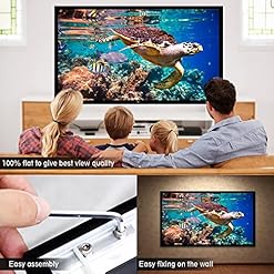 EXTRA MIDDLE SUPPORT: This wall mounted Home Theater Fixed Flat Big Projection Screen by Pyle has an included extra middle Give a boost to bar in the back of the frame to take care of its rectangular shape. Refer to manual for easy set up & take down