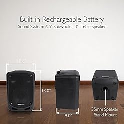 COMPACT AND POWERFUL: This Compact and High Powered 600 Watt Karaoke PA Sound System by Pyle is equipped with 6.5 inch Subwoofer and 3” Treble Speaker for Full Range Stereo Sound Reproduction. Perfect for patio party, crowd Regulate.