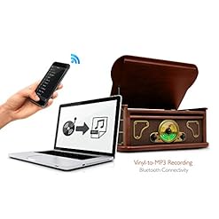 Pyle Bluetooth Turntable Record Player , Built-in CD & Cassette Players, AM/FM Radio, Vinyl-to-MP3 Recording Brown (PTCDS8UBT)
