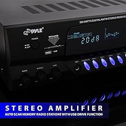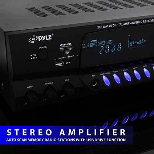 Home Audio Stereo Receiver Power Amplifier – 350 Watt w/ USB, AM FM Tuner, 2 Microphone Input w/ Echo for Karaoke, Great Addition To Your Home Entertainment Speaker System – Pyle PT530A