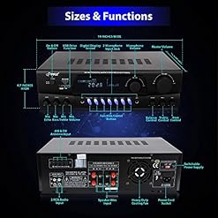2 MIC Input, Treble and Bass of MIC Adjustable, Independent MIC Volume Control – Power Output: 350W for L, R Channel (4 Ohms)