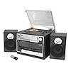 Updated Classic Style Record Player – Bluetooth Turntable with Vinyl to MP3 Recording, Dual Cassette Deck & CD Player, Convert Vinyl to MP3, 3 Speeds: 33, 45, 78 RPM, Wireless Remote – Pyle PTTCSM70BT