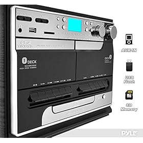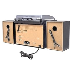 The PTTCSM70BT Bluetooth turntable and Speaker System combines classic turntable style with up to date technology. It may play it all. wirelessly stream music out of your device by the use of Bluetooth, insert a USB flash drive or SD memory card loaded with MP3 digital music files, find your favorite AM/FM radio station, connect an external device like a CD or MP3 player by the use of the aux input in conjunction with your favorite vinyl records. This turntable can even will give you the ability to turn your vinyl records into MP3 digital music files. Turn that bulky stack of records into a compact digital music library. The two external stereo speakers will fill any room in the home with crisp stereo sounds even as the vintage design will make this turntable the centerpiece to any room. Add the classic feel and look with the PTTCSM70BT Bluetooth turntable and Speaker System.