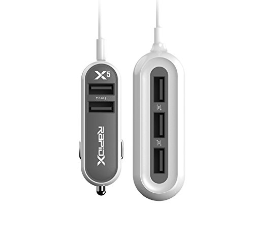 RapidX X5 USB Car Charger 2-2.4A Extended Charging Hub with 5 Ports & Intelligent Recognition