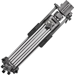 The legs are a 3-Segment Interlocking Crutch-Type design with a mid-level spreader providing oustanding stability for Video Cameras as much as 27lbs. The legs utilize large ergonomic lock adjustment knobs and rubber feet for stability. Interchangeable heads connect to the legs the use of a normal 75mm bowl with a separate lock adjustment providing pan and tilt adjustment along with the head.