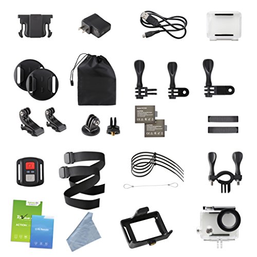 Look forward to receive the Review XP® action camera in a handy hard case with an ample array of favorable accessories including the waterproof housing, a handle bar, mounts, clips, bandages, tethers, adhesives, a charger, a USB charging cable, a lens cloth, a carry bag, 2 detachable 1050mAh Li-Ion Batteries that last up to 90 minutes, and an ultra-convenient wrist 2.4G Remote Control, that will give one the opportunity to start and stop recordings or snap photos without utilizing your camera.