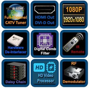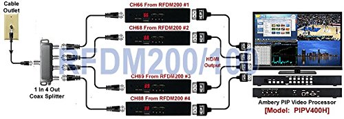 Professional grade agile RF coax demodulator for converting the RF coax cable TV signals into either 1080p HDMI or DVI output at 1920×1080 pixels. Decode all UHF/VHF channels, analog cable channels, satellite RF output and other modulated outputs.