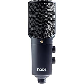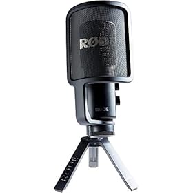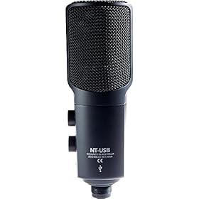 NT-USB USB Condenser Microphone. The NT-USB is a highly versatile side-address microphone that is ideal for recording singing and musical performances along with spoken applications such as podcasting and voice-over. It is fully compatible with all mainstream recording applications on both Windows and Mac OS based computers, in addition to the Apple iPad the usage of R˜DE Rec, GarageBand, or any other recording app that accepts an external microphone. Use on the Apple iPad requires a suitable USB connection adaptor, such as the Apple Camera Connection Kit. The body of the NT-USB features a zero-latency stereo headphone monitoring (3.5mm) jack, which lets you monitor the microphone input in realtime, at the side of dials to adjust the monitoring level and mix between the computer/iPad audio and the microphone input. A premium pop-filter is included, which fits onto the base of the mic, positioning the filter the ideal distance from the capsule to minimise plosives (hard ˜B’, ˜T’ or ˜P’ sounds that produce a harsh sound) all the way through singing or speech. Also provided is a fine quality stand mount with industry standard 3/8″ thread, desktop tripod stand that allows the NT-USB to take a seat at a comfortable height on a tabletop, and a pouch for storage of the microphone when not in use.