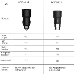 MAIN FEATURES; Music Player /FM Transmitter /Car Charge / Battery Monitor for car / GPS Navigation Broadcast /APP Smart Remote, Smaller design but multi-functions in a ROIDMI music Bluetooth 4.2 car charge 3S ,Notice:ROIDMI 3S is not built MIC, and not supply hands-free call