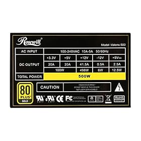 ROSEWILL Gaming 80 Plus Gold 1000W Power Supply/PSU, Capstone Series 1000 Watt 80 Plus Gold Certified PSU with Silent 135mm Fan and Auto Fan Speed Control, 5 Year Warranty