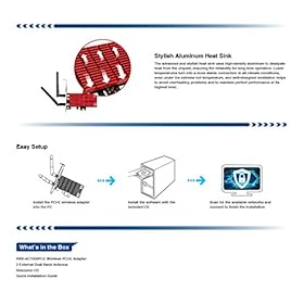 Advanced Heat Sink Design and Security: Distributes heat away from core components to improve reliability and performance of the PCIE wireless network adapter. Supports Advanced Security: 64/128 WEP, WPA/WPA2, WPA-PSK/WPA2-PSK(TKIP/AES)