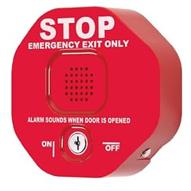 Safety Technology International, Inc. – STI 6400 Exit Stopper Multifunction Door Alarm. Helps prevent unauthorized exits or entries through emergency doors. If the secure door is opened, the electronic Exit Stopper (STI-6400) emits an ear piercing 105 dB warning horn, in an effort to draw attention in a hurry. When activated, the alarm will continue for 30 seconds, three minutes or incessantly (as preset by the user). A key operated override will silence the alarm and make allowance authorized exits. An alternative choice is annunciator mode, in this mode it announces a doors opening with a set of 10 beeps and then resets. This highly visible “stop sign” design acts as a deterrent, completely self-contained and easy to install. Is also mounted on top, right, left or next to almost any door. Exit Stopper is fitted with a long life 9-VDC alkaline battery. It is to be had in red or green for just about any type of door, mounting or installation. Has a 3 year guarantee against breakage of polycarbonate in normal use (one year on electro mechanical and electronic components). Safety Technology International, Inc. “We offer protection to the things that offer protection to you”
