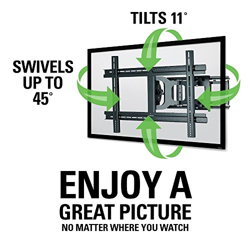 The SANUS Classic MLF13 is a full-motion wall mount for so much 37 inch to 80 inch flat-panel TVs as much as 130 lbs. This full-motion mount extends, pans, tilts and swivels as much as 14 inches from the wall for simple viewing from anywhere in a room. Virtual Axis technology allows 11″ of tilt motion with the touch of a finger to lend a hand scale back glare. Post-installation level adjustment allows TV to “roll” as much as 4″ clockwise and counterclockwise to make sure it’s perfectly level. Includes clips to safe loose cables for a clean, sleek look. Comes pre-assembled for a fast and easy installation. UL-Listed for quality and safety assurance.